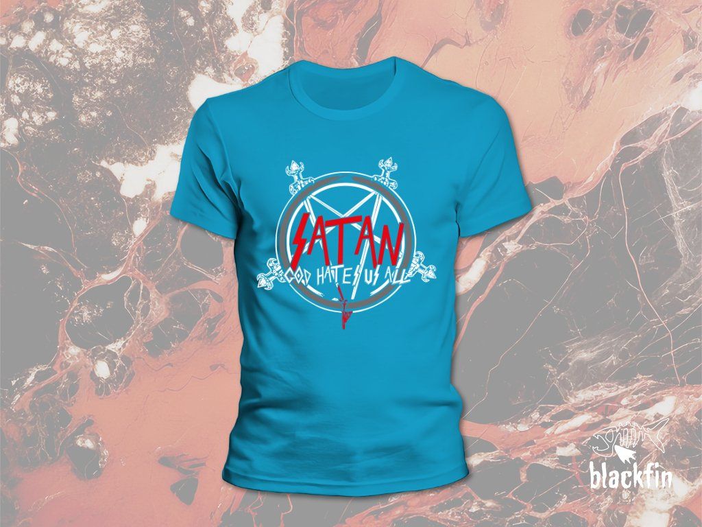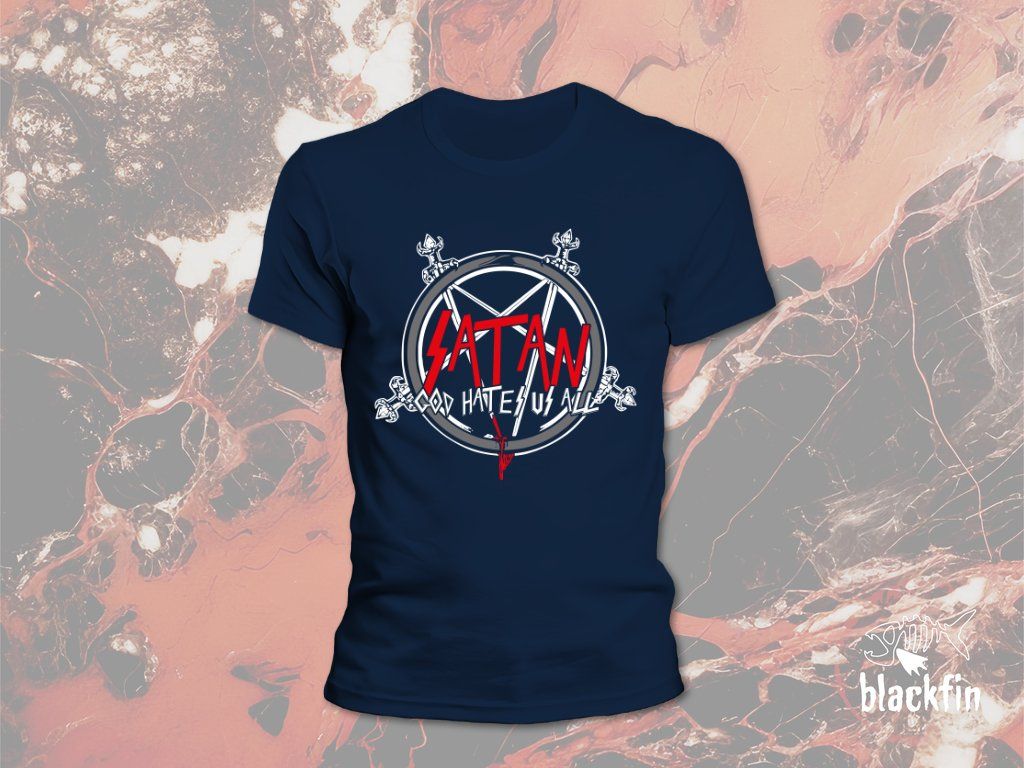 Cotton T-shirt with SATAN - God Hates Us All motif.